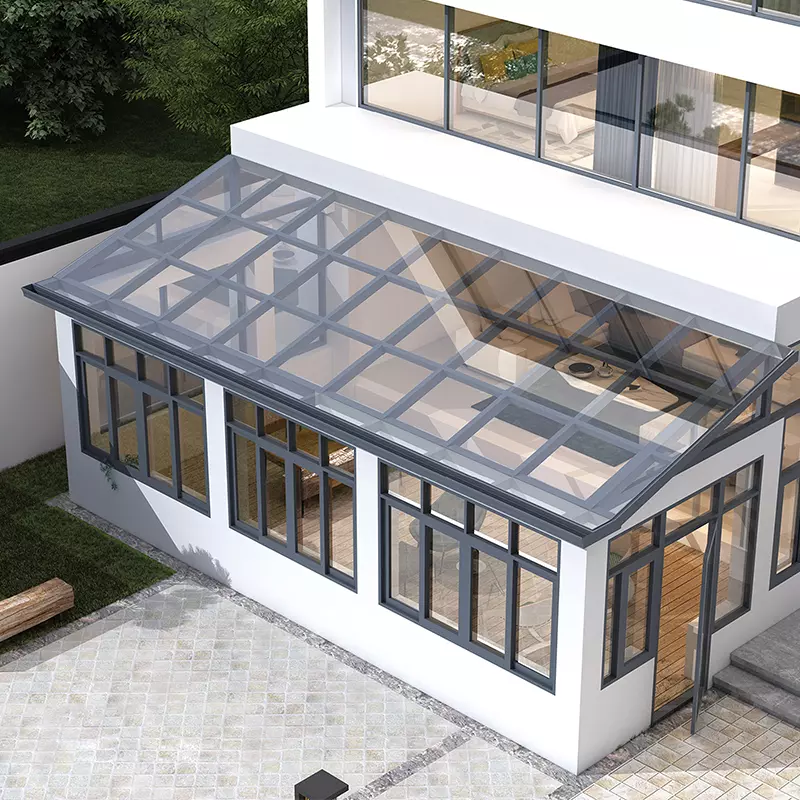 Customizable Design – Choose from lean-to, gable, curved, or folding glass roof styles. Multiple frame colors (white, black, wood grain, etc.) and glass options (tinted, frosted, reflective) available.